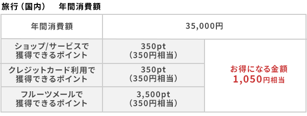 ポイ活は「ポイントサイトを経由すること」が大きな ポイント。 二重でポイントを獲得することができ、二重でお得なサービスを受けることができるようになり ます。 また、クレジットカードを利用すると、利用額 に応じてポイントを獲得することができるので、ポイントを「三重取り」することもできます。 フルーツメールでは、クレジットカードの発行やいつ ものお買い物、旅行時の宿屋やレンタカーの手配など、 ポイントを獲得できる広告が盛りだくさん。 また、毎日無料でポイントを貯めることができるコンテンツも 多数用意しています。 さらに、ランク制度やお友達紹介制度などのサービスを利用すれば、もっとお得にポイ活を楽しむことができます。 いつ、どこで、何を購入しているのか整理し、ポイントサイトのフルーツメールを利用して、お得に「ポイ 活」をしましょう!