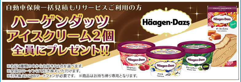 自動車保険一括見積もりをご利用いただいた方にハーゲンダッツアイスクリーム2個をプレゼント!