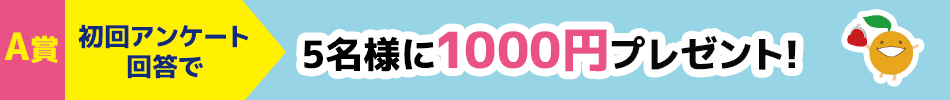 初回アンケートに回答された方の中から抽選で5名様に現金1000円をプレゼント!