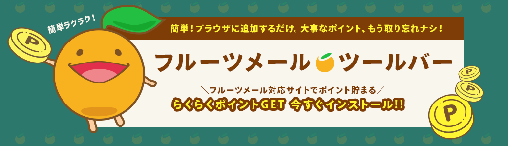 Cookieが無効になっていてフルーツメール経由と確認できない場合はポイントが加算されませんので、ご注意ください。 - 同じショッピングサイトで複数回お買い物をする場合は、 その都度このページからサイトに訪問してください。